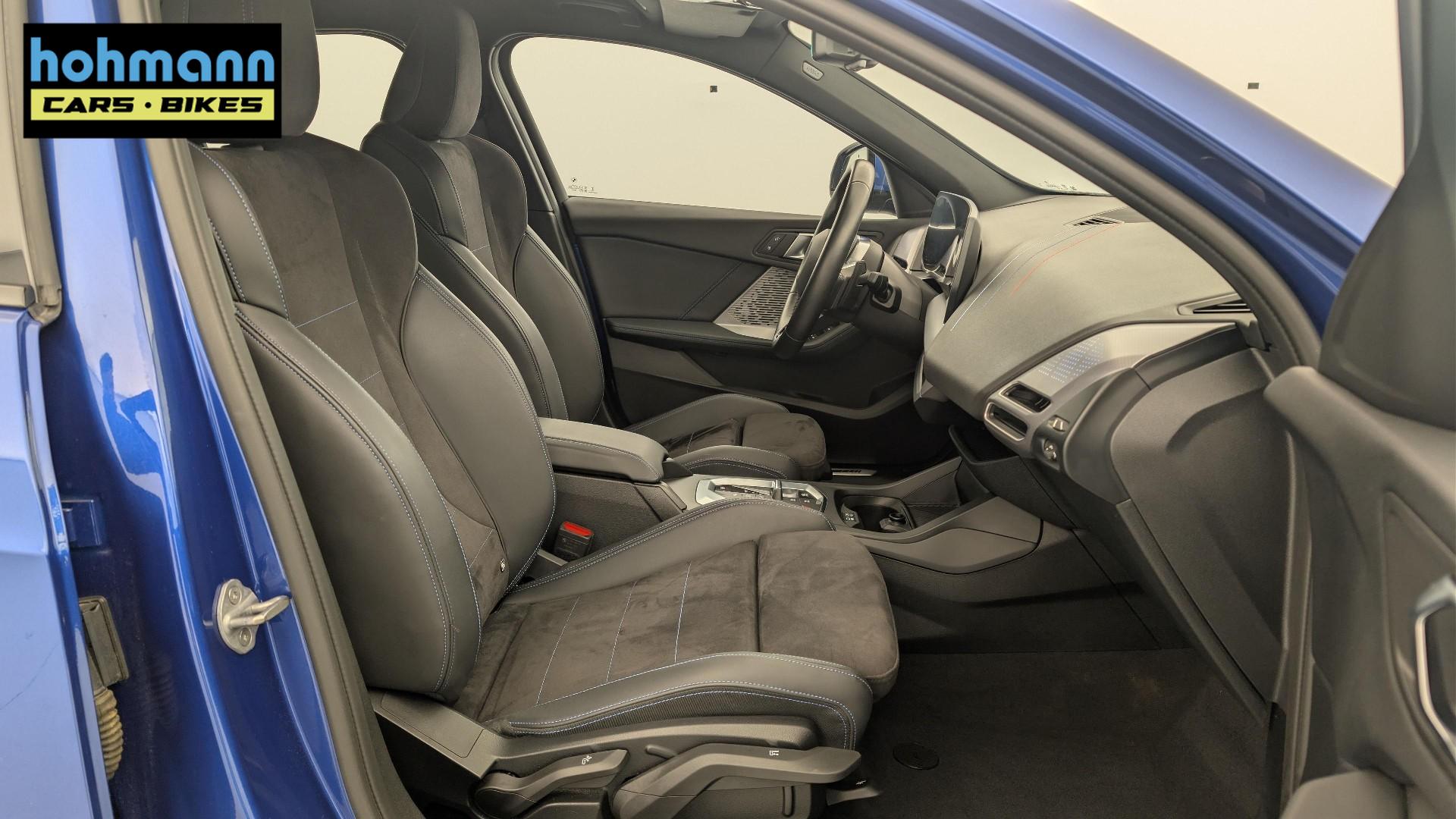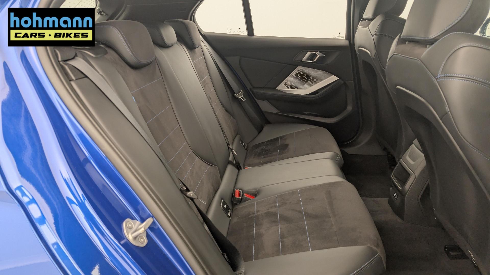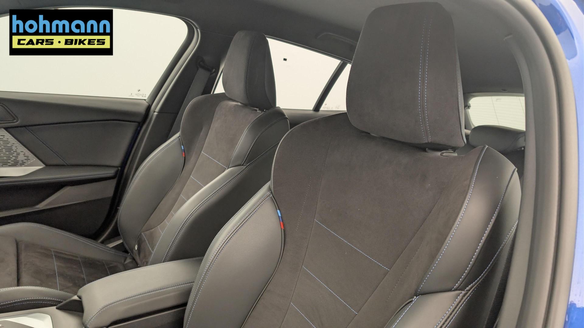 • Polsterung Alcantara / Kunstleder Veganza Schwarz mit blauen Nahten