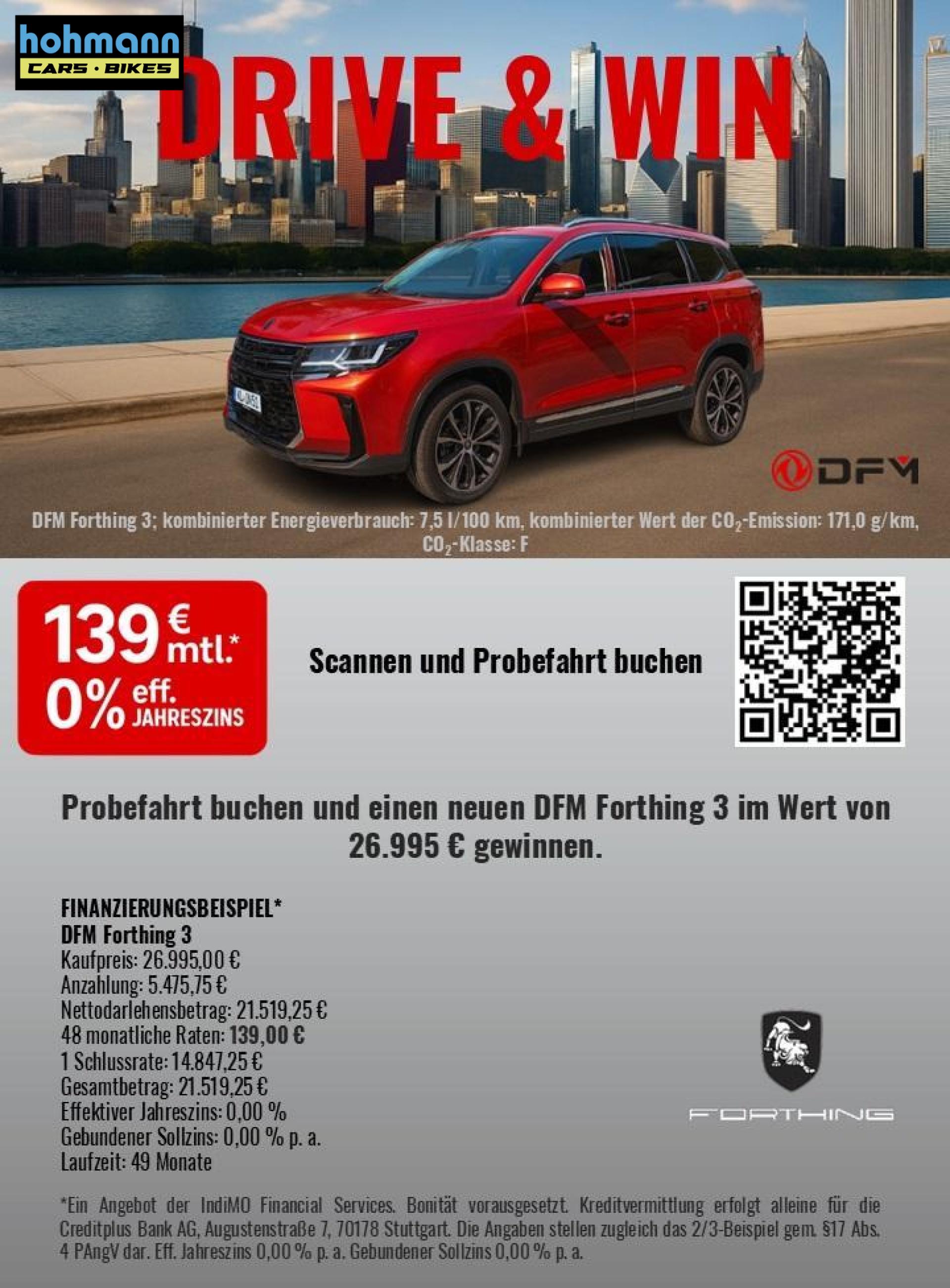 Jetzt Probefahrt buchen und mit etwas Glück einen Forthing 3 gewinnen!